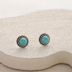 Western Boho Faux Turquoise round stud earrings silver toned alloy