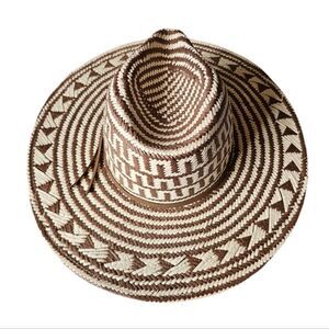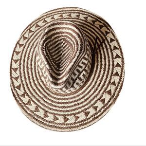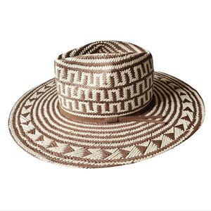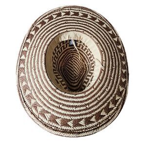 Western Boho Style Printed Paper Sunhat, Brown and Tan