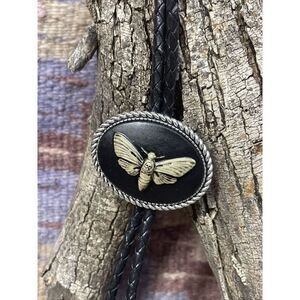 Western Bolo tie Lariat Death Head Moth Skull Cameo Rustic Wedding Attire Party