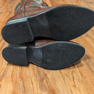 Very good condition women's Western boots. These cowgirl boots have been lightly worn and show minimal signs of wear. Boot cutouts feature a realistic camouflage pattern. RG embroidered in pink on back of boot. These were very lightly worn. See photos for minimal scuffs and marks.