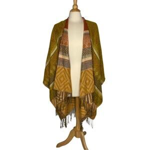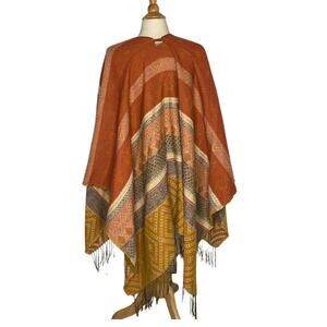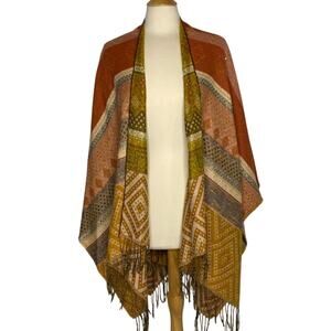 Western Festival Southern Tribal Print Fringe Oversized Layering Winter Fall Transitional Tranistion Piece Sweater Kimono poncho
