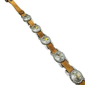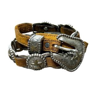 Western Brown Leather Silver Concho Star Belt Cowboy Boho Western Style
