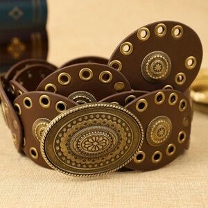 Western Brown Vegan Leather Grommet Concha Belt