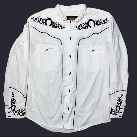 White long sleeve western shirt with embroidered details #westernwear