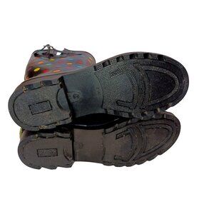 Western Chief Black Polka Dot Waterproof Tall Lug Rubber Rain Boot Womens Size 6