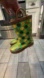 Playful rain boots with girl Scout cookie, design. Ideal for wet weather fun.