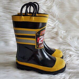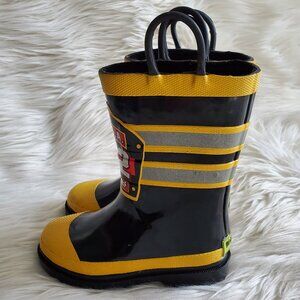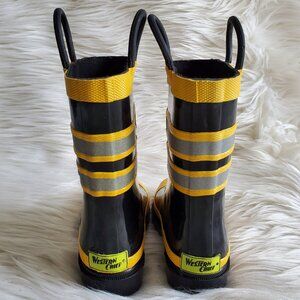 Western Chief Kids Black/Yellow Firefighter Waterproof Rain Boots SZ 8