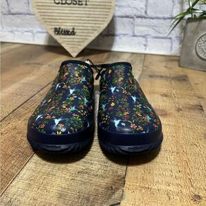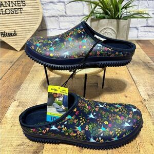 Western Chief Ladies Garden Rubber Clog Navy Humming Bird Size 10 NEW