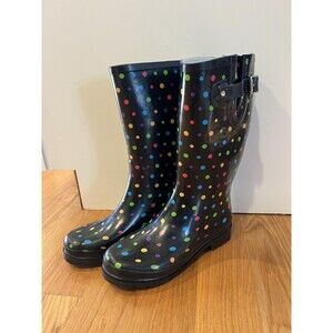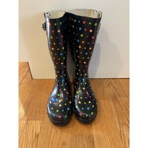 Western Chief Rain Boots Womens Size 8 Multi Color Polka Dot Waterproof Rubber Tall