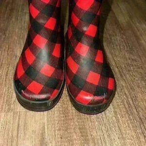 Western Chief Red Black Buffalo Plaid Rain Boots 7/8