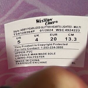 Western Chief Sparkle Heart Light Up Waterproof Rain Boots Pink Girls US 5C