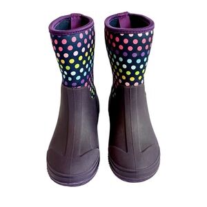 Western Chief Waterproof Rain Snow Boots Purple Rainbow Colorful Polka Dot Lined