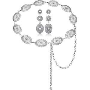 Western Concho Belt & Earring Set – Vintage Silver-Tone Rodeo Style Cowgirl