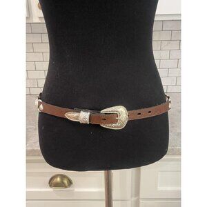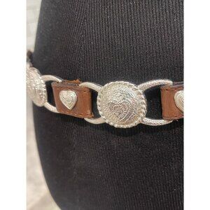 Western Concho Belt Womens Medium Brown Leather Silver Heart Buckle Boho Cowgirl