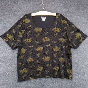 Western Connection II Women's Knit Top Black Yellow Plus Size 3X Short Sleeve