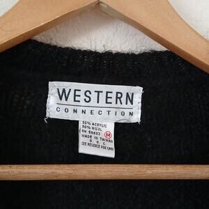 Western Connection vintage wool blend cardigan sweater with shoulder pads, button up, pockets.