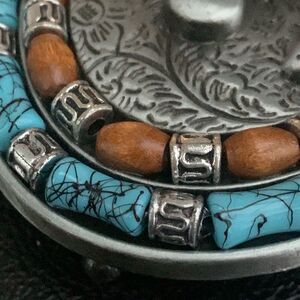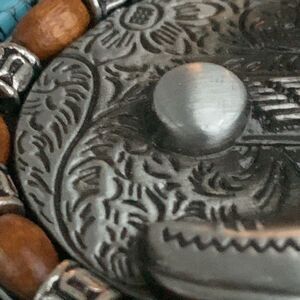 • Faux turquoise and wood-tone accents