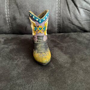 Western Cowboy Boot Figurine Hand-Painted Ceramic Multicolor Decoration