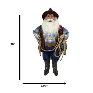 Bring western flair to your holiday décor with this 18-inch Holiday Cowboy Santa Claus figure. Dressed in a plaid shirt, brown vest, denim jeans, and shiny cowboy boots, Santa trades in his sleigh for the spirit of the Wild West. He wears a wide-brimmed cowboy hat and carries a coiled rope in one hand, ready to lasso up some festive fun. A red bandana peeking from his vest adds a classic cowboy touch. Perfect for rustic or country-themed Christmas displays, this unique Santa adds personality and charm to any holiday setting