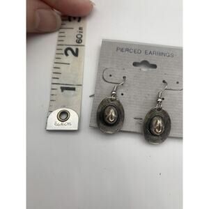 Western Cowgirl Cowboy Hat Earrings Silver Tone