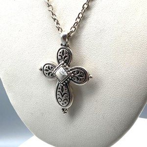 Western Cross Pendant Necklace with Howlite Stone Center on Silver Tone Chain