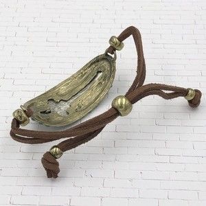 Tags- rustic vintage burnished boutique young trendy western southwestern religious blessed suede two 2 tone gold silver brown dark turquoise blue