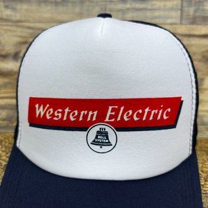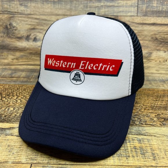 WESTERN ELECTRIC MENS TRUCKER HAT NAVY SNAPBACK 1953 VINTAGE LOGO BASEBALL CAP