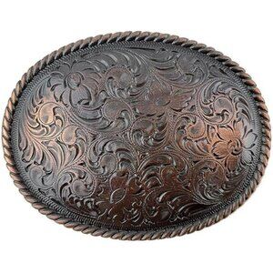 *H8136 Western Floral Engraved Pattern Rope Edged Belt Buckle Fits 1-1/2"(38mm) Belt (Copper)