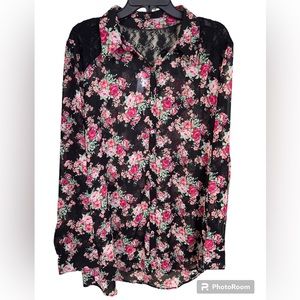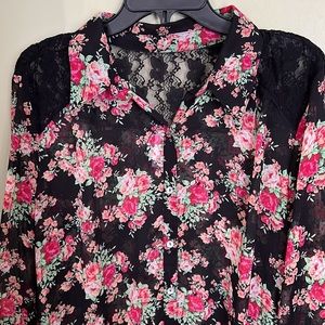 Womens No boundaries sheer Western long sleeve button down blouse floral pattern