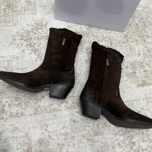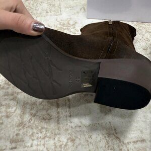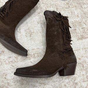 Western Fringe Suede Boots Womens Size EU 40 Brown Made in Italy Block Heel Zip