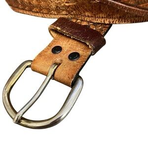Western Genuine Top Grain Leather Made in USA Brown Woven Pattern Mens Size 40 General Worn in Wear Gold tone belt (wear) Perfect for the Rugged