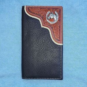 Western Genuine Leather Two Tone Checkbook Wallet Card Holder Horse Horseshoe