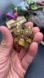 Stunning vintage Western Germany filigree necklace with slag glass, amber toned rhinestones, faux pearls and brass findings. Necklace chain is 24 inches end to end and pendant has a 2.5 inch dangle.