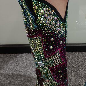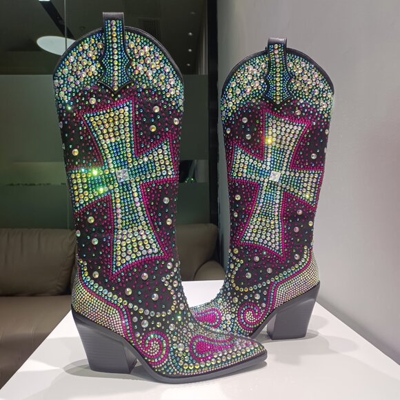 Western Knee - High Cowboy Boots With Rhinestone Cross