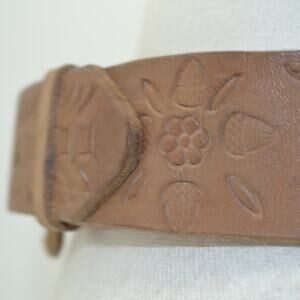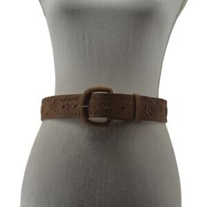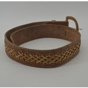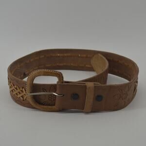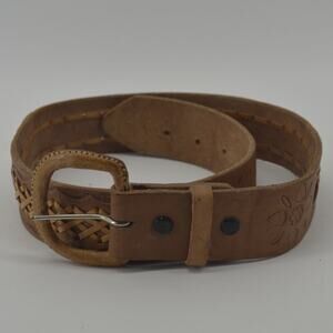 Western Leather Belt Tooled Stitched Brown Cowboy Size 28/29