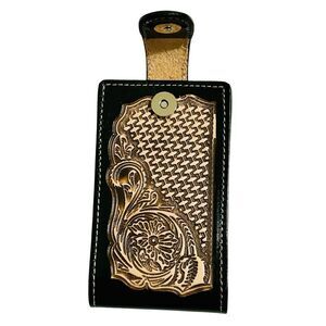Elevate your style with this handcrafted leather phone case. Featuring intricate designs in black and brown, this accessory is perfect for the modern man. Durable and stylish, it offers excellent protection for your phone.