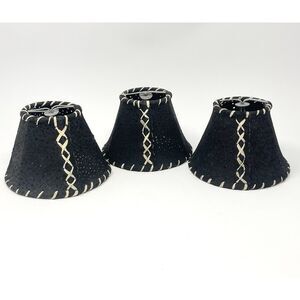 Western Leather Pigskin Suede Chandelier Sconce Lamp Shade 6x4” Black Set Of 3
