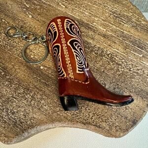 Western Leather Purse Charm Cowboy Boot Keychain NeW FAST SHIP Bag Flair