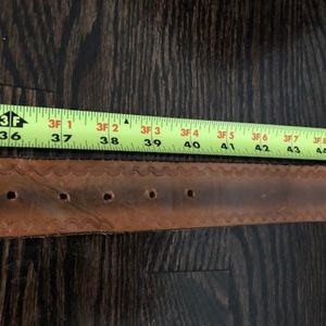 This is a very cool one of a kind belt with a hand carved wooden buckle. Size 36-40. Genuine retro! This belt has been worn. There are some scuffs on the buckle.