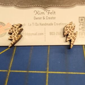 Stylish leopard print lightning bolt earrings. Perfect for a bold look.