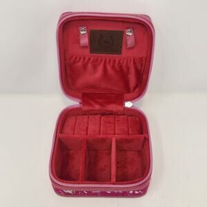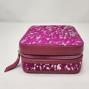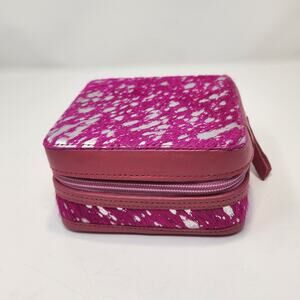 Western Linens Cowhide Leather Square Jewelry Case Box Pink Metallic Silver