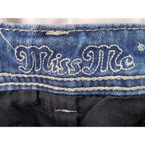 Western Miss Me Women's 30 Blue Retro Boho Vintage Logo Crop Indie Jean. Vintage Heavy bling and stitching with whiskering Boho crop Jeans. Nature wear fade on front and back perfect for pairing with tanks for an Indie aesthetic. Pairs with Boho blouses and summer sandals. Y2K Vintage crop jeans that can be rolled at the hems or left down. Easy Cowgirl Chic look with button shirts and calf boots . Good for styling many ways.