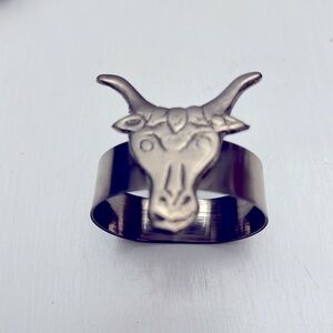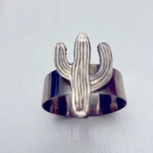 Here is a set of four Western Napkin Rings of a Cowboy Hat, cowboy Boot, a Cactus and a Bull, not marked but my guess would be stainless