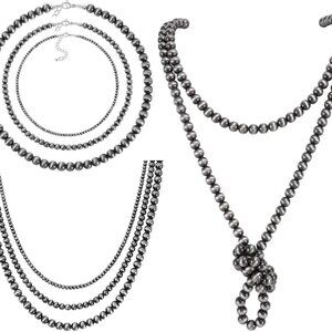 Western Navajo Pearl Necklace Set 5pcs Beaded Choker Vintage Gift for Women