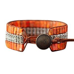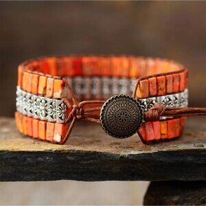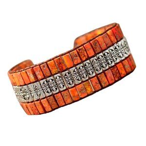 Western Orange Mohave Turquoise Leather Silver Bracelet Adjustable Southwest