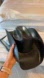 This hat is black, a harder plastic which was custom shaped into a cattle rancher style.