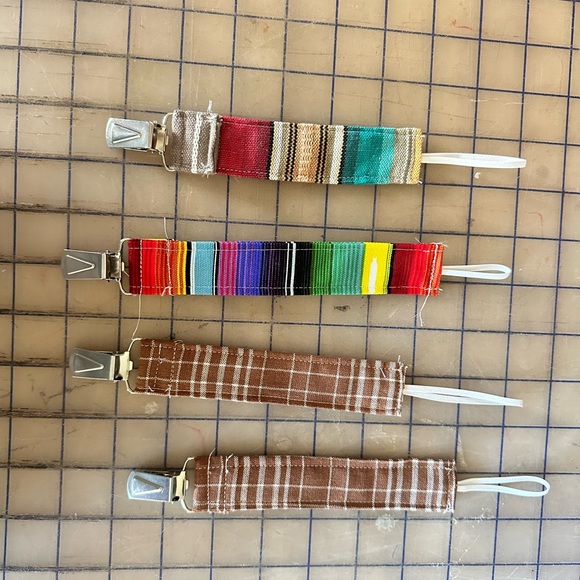 Handmade pacifier clips! These are my first ones. I’m trying to learn to make some western themed baby items.