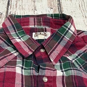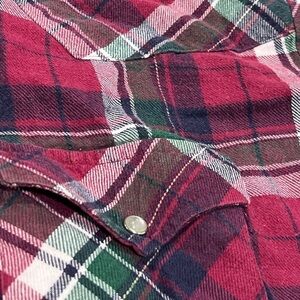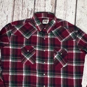 Western Pearl Snap Ely Cattleman Flannel Plaid Cowboy Rancher Vintage Shirt