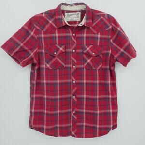 Western Pearl Snap Shirt Mens Medium Red Plaid Rockabilly Western Lightweight