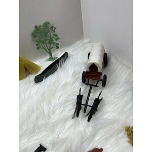 You are buying a Western Playset Plastic Toy Cowboys Horses Wagon Canoe Tee Pee Trees